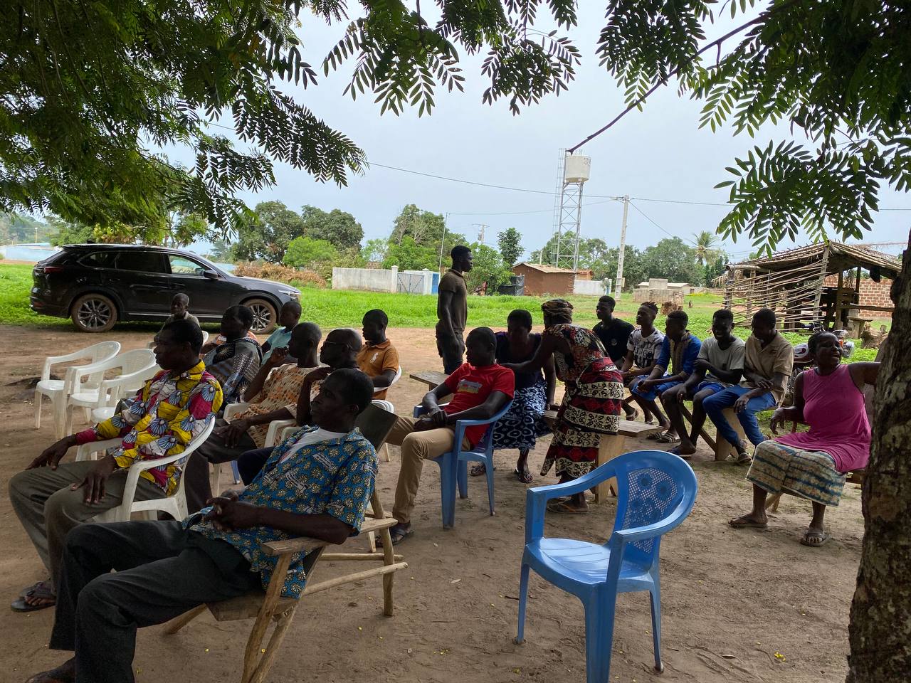 Avec les bénédictions de la chefferie, les jeunes et les femmes ont été sensibilisés sur la création de richesse à travers l’élevage de poulets « africains » et la production de maïs.